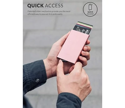 Różowy uchwyt na kartę Bonluo z ochroną RFID, rozmiar 9*6,5*1 cm