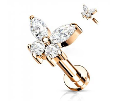 Złoty piercing do chrząstki w kształcie motyla ze stali nierdzewnej 316L (1 szt.)