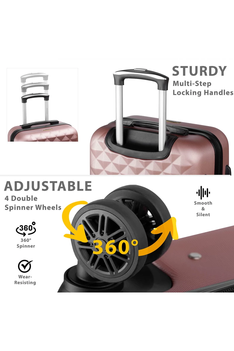 Zdejmowane koła zapewniają doskonałą zwrotność na każdej nawierzchni, a system zamka szyfrowego (kod predefiniowany 000) gwarantuje bezpieczeństwo bagażu.